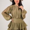 Intrigue the crowds with your luminous aura in the Feeling Radiant Taupe Midi Dress! Featuring a flattering smocked bust for a fitted yet comfortable feel, flowy long sleeves, and a graceful midi length, this dress is perfect for both casual days and special occasions. The soft taupe hue adds a touch of understated elegance, making it easy to style with boots, heels, or sandals year-round! Lightweight Woven Knit Fabrication Smocked Bust Elastic Square Neckline with Functional Drawstring Tie Elastic Shoulders Long Balloon Sleeves with Elastic Cuffs Smocked Bust Elastic Waistband Flowy Fit Side Pockets Midi Length Lined Body, Unlined Sleeves Self + Lining: 100% Polyester Hand Wash Cold, Line Dry Model is 5’6″ and wearing a Small.Garment Measurements in Inches:Small | Bust 26″ (Stretches up to 32″) | Waist 26″ (Stretches up to 32″) | Hips 66″ | Length 49″Medium | Bust 28″ (Stretches up to 34″) | Waist 28″ (Stretches up to 34″) | Hips 68″ | Length 49.5″Large | Bust 30″ (Stretches up to 36″) | Waist 30″ (Stretches up to 36″) | Hips 70″ | Length 50″