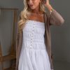 Cheer on your team in style with the First Down Tiered Strapless Mini Dress! Featuring a flirty tiered silhouette and a comfortable strapless neckline, this dress is perfect for keeping cool while looking cute on game day. Its playful design makes it easy to pair with sneakers or boots, while the lightweight fabric ensures all-day comfort from tailgates to the final score. A spirited choice for showing off your team pride in chic fashion! Available in 5 colors. Lightweight Denim Fabrication Strapless Neckline with Frayed Hems Flowy Tiered Fit Back Zipper Smocked Back Short/Mini Length 100% Cotton Hand Wash Cold, Hang or Line Dry Models are 5’4″ + 5’6″ and are wearing a Small.Garment Measurements in Inches:Small | Bust 26” | Waist 28” | Hips 34” | Length 25”Medium | Bust 28” | Waist 30” | Hips 36” | Length 26”Large | Bust 30” | Waist 32” | Hips 38″ | Length 27″